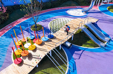 儿童攀爬游乐园是由跳跃云、旱喷广场、漩涡爬网三大元素组成的一处......
